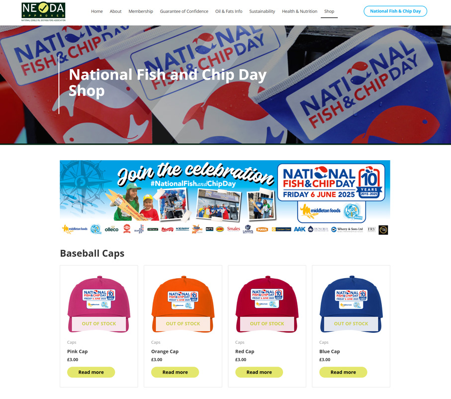 A custom WooCommerce store developed for NEODA to support the annual National Fish & Chip Day campaign. The store enables the sale of branded merchandise and promotional items through a streamlined, user-friendly shopping experience. Built to integrate seamlessly with the main WordPress site, the store provides simple product management, secure checkout, and easy order handling, allowing the NEODA team to efficiently run campaign-driven sales each year.