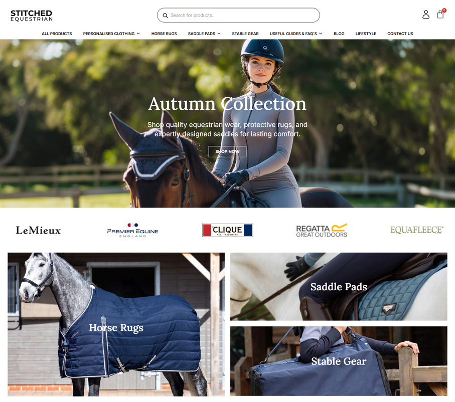 A custom WooCommerce WordPress ecommerce website developed for Stitched Equestrian, a UK-based equestrian apparel and personalised gear brand. The site features advanced product customisation, allowing customers to upload logos, choose placement positions, and personalise garments directly on the product page. Designed with a strong focus on user experience and conversion, the platform combines clean visual presentation, intuitive navigation, and a streamlined checkout process, while giving the client full control over products, orders, and customisation rules through WordPress and WooCommerce.